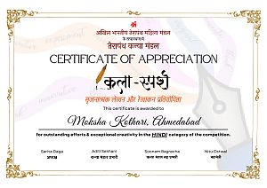 In December 2023, ABTKM organized the Kala Sparsh, a creative writing and art competition focused on the theme of "Family (Paarivarik) Role Model." A total of 174 entries were received, with 75 submissions in English and 99 in Hindi. The competition saw enthusiastic participation from 88 kshetra, who submitted two outstanding articles each highlighting various family members such as mothers, fathers, uncles, aunts, brothers, and grandparents. These entries were digitally showcased on platforms like WhatsApp groups and social media channels such as Instagram and Facebook, allowing for widespread recognition. The winners were chosen through collective judgment by esteemed personalities from diverse cities, and the results were announced via Zoom, with Mrs. Babitaji Raysoni and Mrs. Kajalji Lunkad serving as Guests of Honors, drawing approximately 196 attendees to the online event.