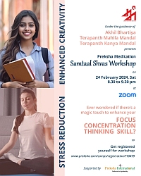Samthal Shvas Preksha Workshop was successfully conducted on Zoom on February 24, 2024. Over 150 girls from 87 regions participated in the event.Mr. Sameer Vakil, Co-founder and CEO of Global Linker, served as main speaker, shedding light on Preksha meditation and elucidated Preksha in simple terms through a PowerPoint presentation, conducting practical demonstrations to enhance understanding of the process of inward and outward breath.