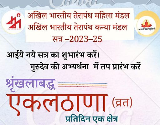 On the auspicious occasion of the 50th Diksha Diwas of Acharya Shri Mahashramanji, ABTKM (Akhil Bhartiya Terapanth Mahila Mandal) has organized the "Ekalthana Workshop". This workshop will be conducted from October 15, 2023, to April 30, 2024